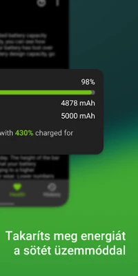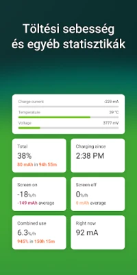 Ne elégedjen meg a lassú töltéssel! Az AccuBattery segítségével könnyedén megtalálhatja a leggyorsabb és leghatékonyabb töltőket, valamint USB kábeleket készülékéhez. Mérje meg a töltőáramot (mA) valós időben, és tudja pontosan, mikor fejeződik be a töltés. Az AccuBattery nem csupán sebességet kínál: részletes adatokat szolgáltat a valós akkumulátorkapacitásról (mAh), a töltésenkénti elhasználódásról, valamint folyamatos értesítéseket biztosít a legfontosabb statisztikákról. Fedezze fel az AccuBattery Pro verzióját a reklámmentes élményért, sötét témákért és a bővített, történelmi adatokhoz való hozzáférésért, ezzel is támogatva a minőségi, független fejlesztést, amely nem igényel személyes adatokhoz hozzáférést.