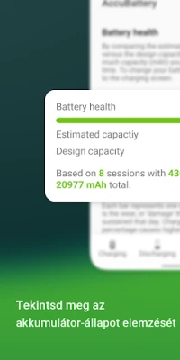 Az AccuBattery tudományos alapon elemzi és kijelzi a telefon akkumulátorának állapotát és részletes használati adatait. Pontosan méri az elem valós kapacitását (mAh), átfogó képet nyújtva az energiafelhasználásról és segítve az akkumulátor élettartamának optimalizálását.