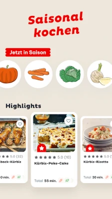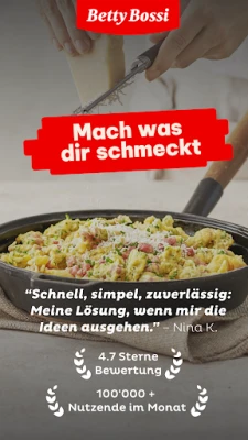 Soha többé ne gondolkodjon azon, mit tegyen az asztalra! Merítsen ihletet a napi friss receptekből, melyek szezonális finomságokkal inspirálják Önt vacsorához, ebédezéshez vagy bármilyen alkalomra. A Betty Bossi intelligens keresőjével könnyedén megtalálhatja a tökéletes fogást – egyszerűen adja meg, mi van otthon, vagy milyen alapanyagokra vágyik, és az alkalmazás pillanatok alatt elővarázsolja a sikeres, kipróbált recepteket. Szűrje az eredményeket az Ön igényei szerint: legyen szó gluténmentes, vegán, laktózmentes étrendről, vagy épp tésztaételekre, salátákra, előételekre, esetleg születésnapi tortákra vágyik. A bevált főzési mód pedig lépésről lépésre vezeti Önt, garantálva a tökéletes végeredményt.