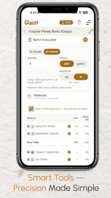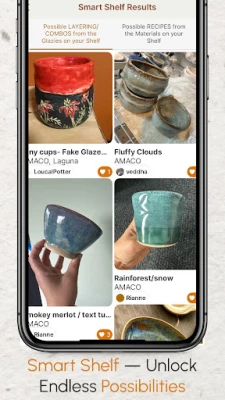 Felejtse el a szanaszét heverő jegyzetfüzeteket! A Glaizit minden mázreceptet, rétegezési ötletet és inspirációt tökéletes rendben tart, egy intuitív digitális archívumban. Fedezze fel a világ vezető kerámiamárkáinak több ezer kereskedelmi mázát, amelyek áttekinthetően rendszerezettek és könnyen összehasonlíthatók. Rögzítse máztesztjeit és égetési eredményeit a konzisztens kimenetel érdekében, és tervezzen vizuálisan vázlatok, jegyzetek és referencialinkek segítségével. Az intelligens raktárkezelő funkció, a Smart Shelf valós időben követi agyagjait, frittjeit és oxidjait, azonnali javaslatokat kínálva az Ön rendelkezésére álló anyagok alapján, optimalizálva a stúdió hatékonyságát és csökkentve a pazarlást.