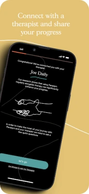 Amennyiben tovább szeretné mélyíteni az önismereti folyamatot, a Paradym lehetőséget biztosít arra, hogy közvetlenül az alkalmazáson belül kapcsolódjon engedéllyel rendelkező terapeutákkal. Zökkenőmentesen megoszthatja velük előrehaladását, fokozva ezzel a terápiás élményt. Adatainak titkosítása garantálja a teljes körű védelmet és a nyugalmat, így gondtalanul fókuszálhat a fejlődésre. A Harvard, UCL és más intézmények szakértői által tervezett Paradym világszerte több mint 100 000 ember bizalmát élvezi, egy megbízható partnerként szolgálva a tartós változás és a teljesebb élet elérésében.