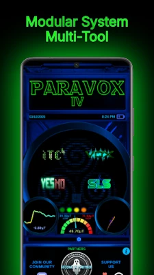 Fedezze fel a PARAVOX 4 bámulatos képességeit a gondosan kidolgozott modulokon keresztül. Az **ITC 4** az alkalmazás szíve, fejlett algoritmusai révén érzékeli és elemzi a környezeti finomságokat, melyek szellemvilági üzenetekre utalhatnak. A **VOX 4** egy valós idejű EMF fonetikai generátor, amely lehetővé teszi a láthatatlan entitások számára, hogy dinamikusan formáljanak szavakat és kifejezéseket, interaktív kommunikációs csatornát nyitva. A **YES/NO** modul egy letisztult, mégis hatékony eszköz a bináris válaszokhoz, míg az **SLS** mesterséges intelligencia segítségével detektálja és vizualizálja a teljes testű szellemmanifestációkat, melyek szabad szemmel rejtve maradnának.