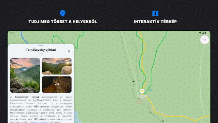 Merüljön el a régió szívében az interaktív térkép segítségével, amely közel 200 négyzetkilométernyi, 90%-ban érintetlen erdővel borított területet tár fel. Kövesse nyomon aktuális pozícióját valós időben, és fedezze fel a környékbeli látványosságokat, valamint a kevésbé ismert ösvényeket, amelyek igazi rejtett kincseket tartogatnak. Ne aggódjon az internetkapcsolat miatt: töltse le előre a térképeket, és élvezze a zavartalan barangolást offline is. Az alkalmazás inspirációt is kínál következő kirándulásához, értékes tippekkel és ajánlásokkal látva el Önt a Szlovák Paradicsom egyedülálló élményeihez.